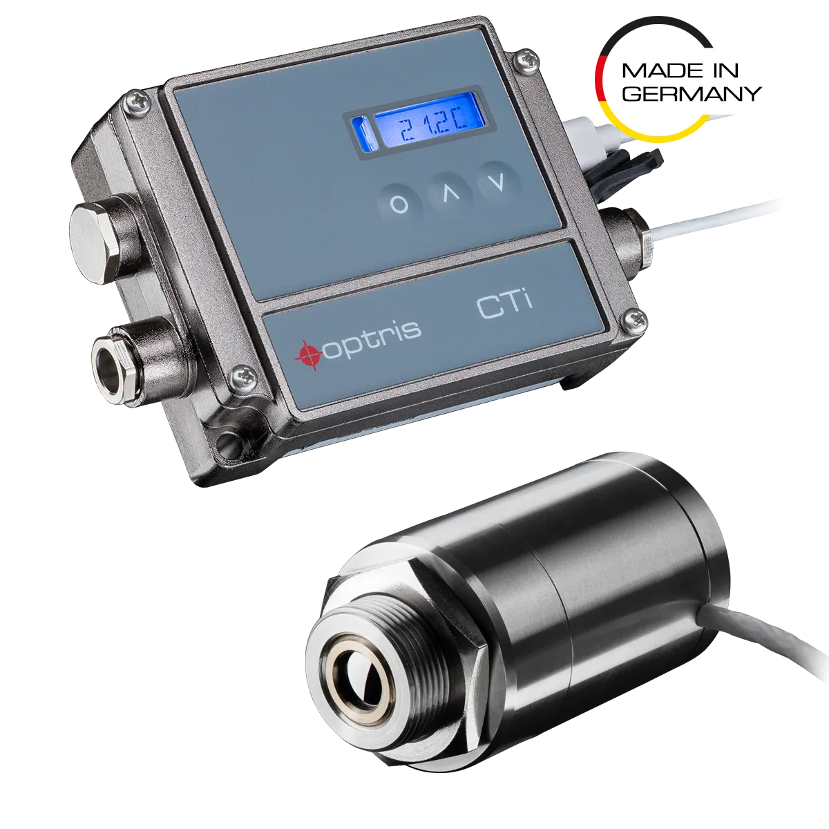 CTi LThot 的独立控制盒提供了高度的灵活性,支持可选的模拟输出和多个数字接口。其在高环境温度应用中的独特优势源于坚固且前瞻性的设计,使传感器头可在无需额外冷却的情况下,在高达 250 °C 的温度下运行。直径 29 毫米、长度 55 毫米的紧凑型不锈钢外壳确保了在恶劣环境中的耐用性。该红外测温仪通过最小化传感器头上的热梯度,优化了热冲击抵抗能力,从而在环境温度快速变化时确保测量精度和重复性。