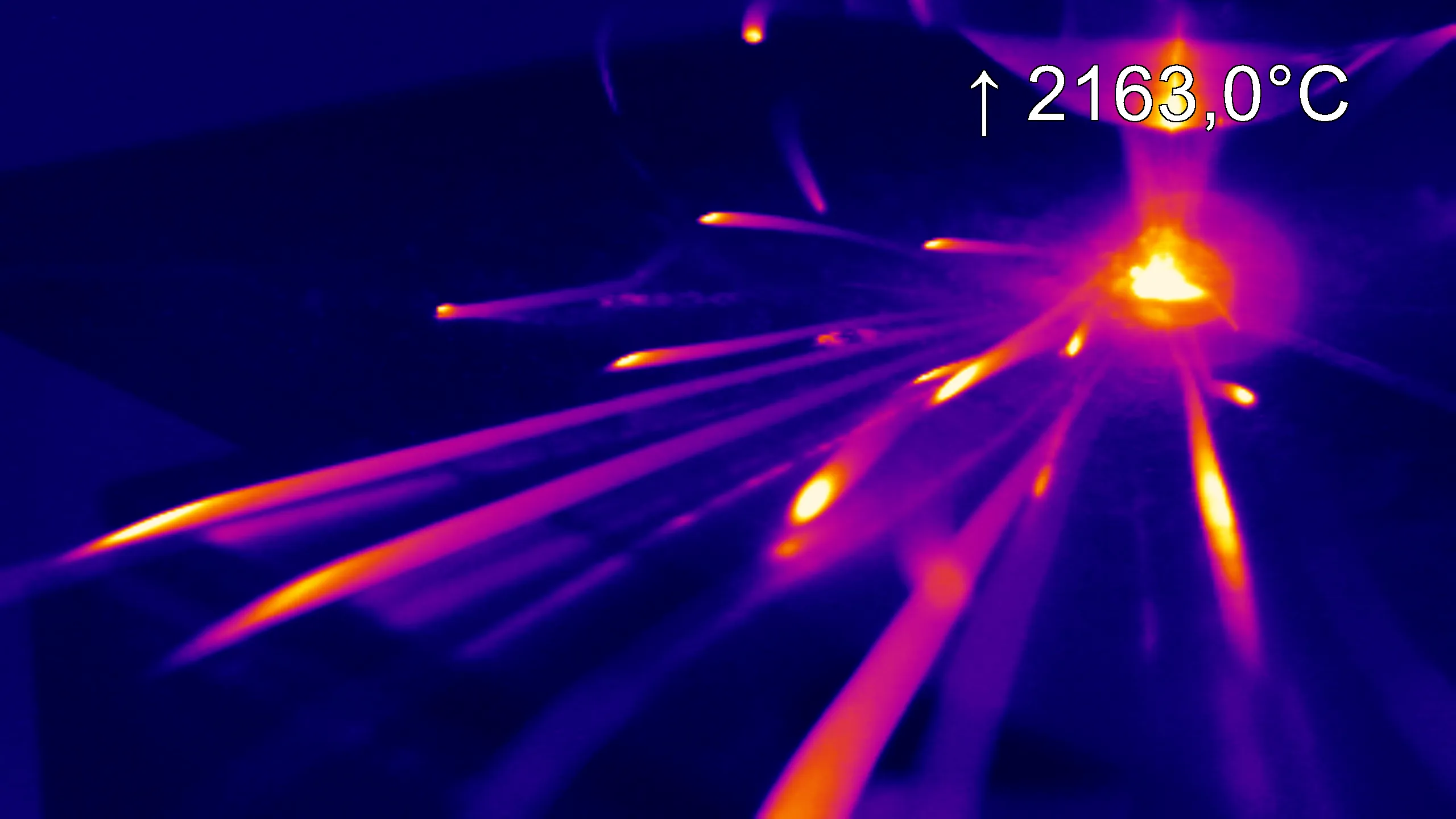 短波红外热像仪 Optris PI 05M 非常适用于激光加工应用,因为它能有效屏蔽540 nm以上的辐射。500 nm左右的光谱范围不易受到周围环境影响,从而即使在发射率变化的情况下也能确保精确的测量。因此,PI 05M 非常适合用于熔融金属的温度测量。