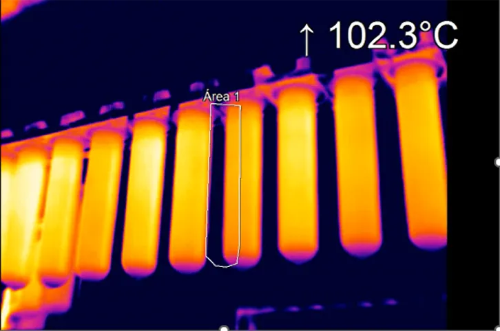 大多数金属目标的发射率较低,且容易反射任何照射到目标表面的热温度。具有长波探测器的红外热像仪(如 Xi440)特别容易受到这种低发射率效应的影响。因此,在测量金属目标时,最好使用短波热像仪(如 Optris Xi1M),除非可以涂覆或喷涂金属部件以提高表面发射率。当金属表面粗糙或有孔洞或缝隙时,也可以在腔体内部进行测量,从而改善发射率。